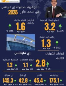 «إي فاينانس للاستثمارات الماليه» تسجل أرقام قياسية تاريخيه بإيرادات 3.2 مليار جنيه وأرباح 1.3 مليار جنيه خلال النصف الأول لعام 2025 بنسبة نمو 41.5%