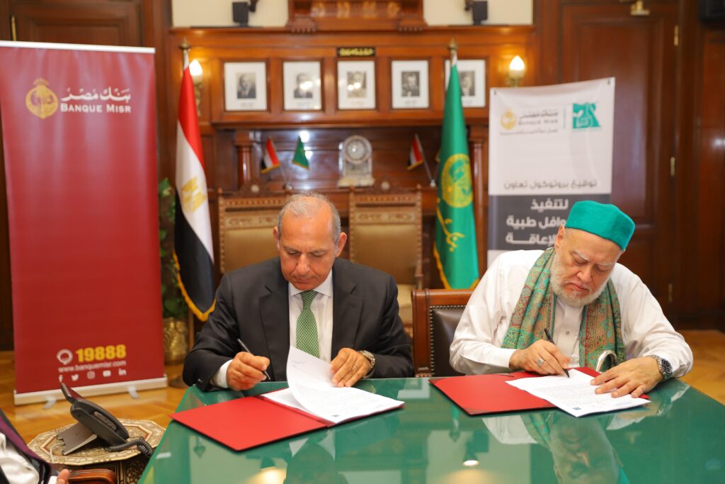 ﻭﻣﻦ ﺟﺎﻧﺒﻪ ﻗﺎﻝ ﻓﻀﻴﻠﺔ ﺍﻟﺪﻛﺘﻮﺭ ﻋﻠﻲ ﺟﻤﻌﺔ ﺭﺋﻴﺲ ﻣﺠﻠﺲ ﺃﻣﻨﺎﺀ ﻣﺆﺳﺴﺔ ﻣﺼﺮ ﺍﻟﺨﻴﺮ ﺃﻥ ﺗﻮﻗﻴﻊ ﺑﺮﻭﺗﻮﻛﻮﻟﻰ ﺍﻟﻴﻮﻡ ﻫﻮ ﺍﻣﺘﺪﺍﺩ ﻟﻠﺘﻌﺎﻭﻥ ﺍﻹﺳﺘﺮﺍﺗﻴﺠﻲ ﺑﻴﻦ ﻣﺆﺳﺴﺔ ﻣﺼﺮ ﺍﻟﺨﻴﺮ ﻭﺑﻨﻚ ﻣﺼﺮ ﻟﺒﺪﺍﻳﺔ ﺧﻄﻮﺓ ﺟﺪﻳﺪﺓ ﻓﻲ ﺍﻟﺘﻨﻤﻴﺔ ﺍﻟﻤﺴﺘﺪﺍﻣﺔ ﺗﻬﺪﻑ ﺇﻟﻰ ﺗﻘﺪﻳﻢ ﺧﺪﻣﺔ ﺗﻨﻤﻮﻳﺔ ﻣﺒﺎﺷﺮﺓ ﺳﻮﺍﺀ ﻓﻲ ﻣﺠﺎﻟﻲ ﺍﻟﺸﻤﻮﻝ ﺍﻟﻤﺎﻟﻲ ﻭﺍﻟﺘﺤﻮﻝ ﺍﻟﺮﻗﻤﻲ ﺃﻭ ﺍﻟﻘﻮﺍﻓﻞ ﺍﻟﻄﺒﻴﺔ ﻟﺬﻭﻱ ﺍﻹﻋﺎﻗﺔ.